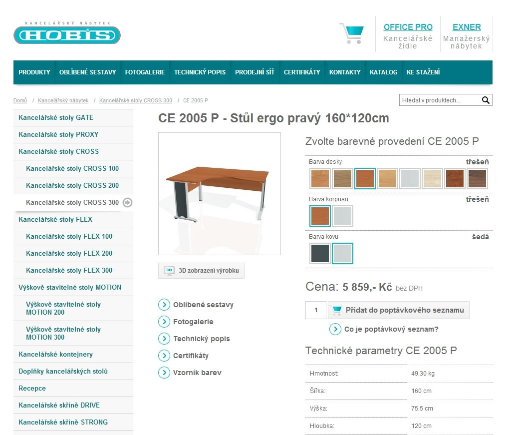 Internetová prezentace značky Hobis - výrobce kancelářského nábytku pro několik zemí. Návrh optimalizovaného ovládání. Propojení databáze sortimentu pomocí redakčního systému se systémem Imos. Vytvoření konfigurátorů kancelářského nábytku ve dvou úrovních: změnou vizuálního náhledu dle barevných kombinací, 3D dynamický náhled na výrobky s možností barevné konfigurace. Prezentace propojuje technikou stránek "for dealers" sortiment s web-site obchodních partnerů. Druhý způsob podpory je speciálních microsite pro menší partnery.