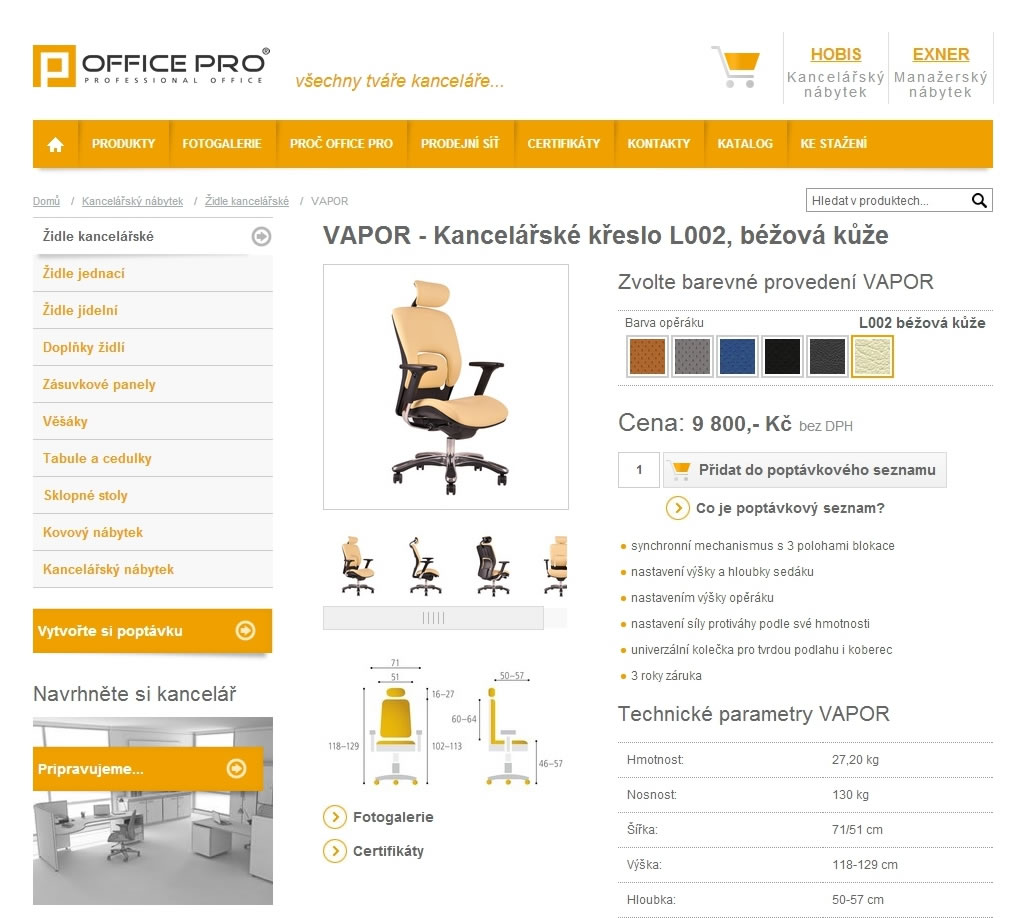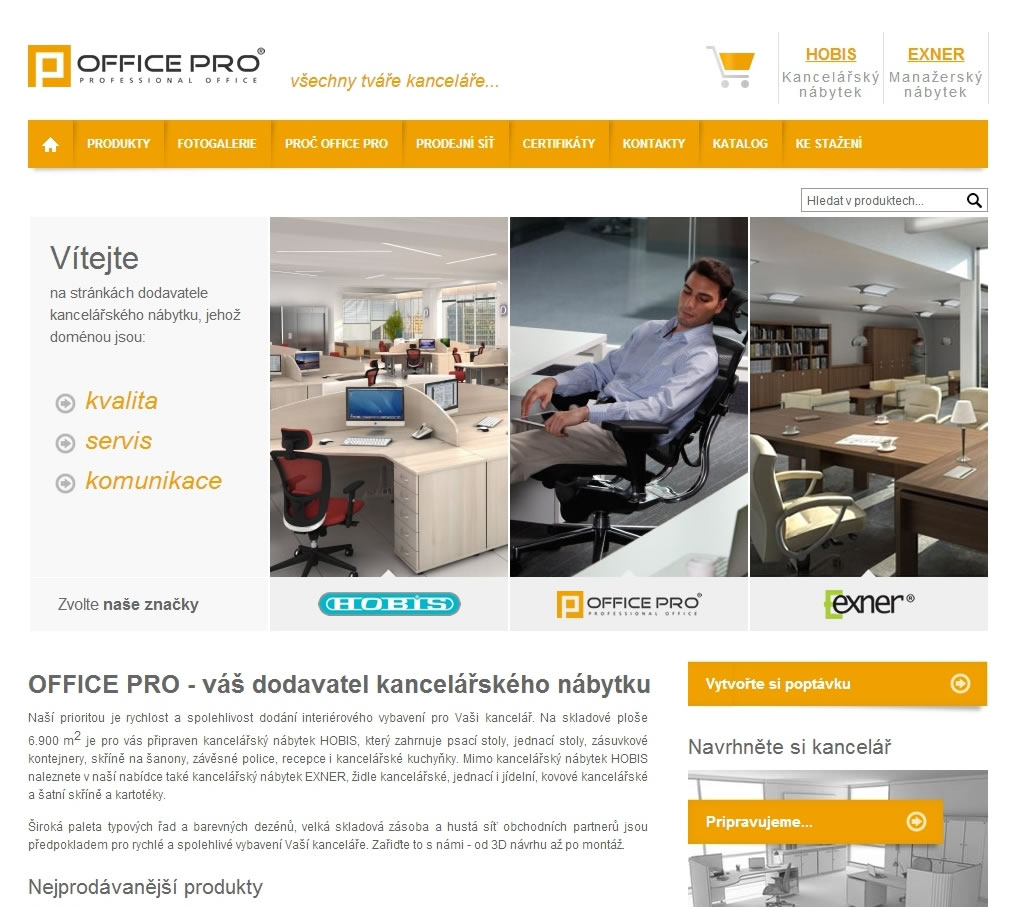 Internetová prezentace Office Pro - velkoobchod s kancelářským nábytkem a dodavatel židlí. Vytvoření kompletní prezentace a redakčního systému v multijazyčném prostředí. Prezentace je propojena s web-site obchodních partnerů.