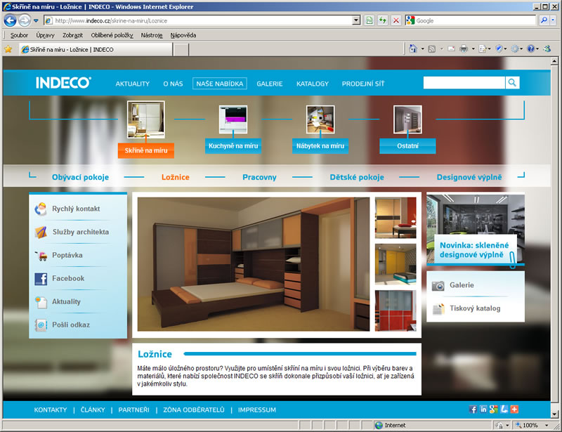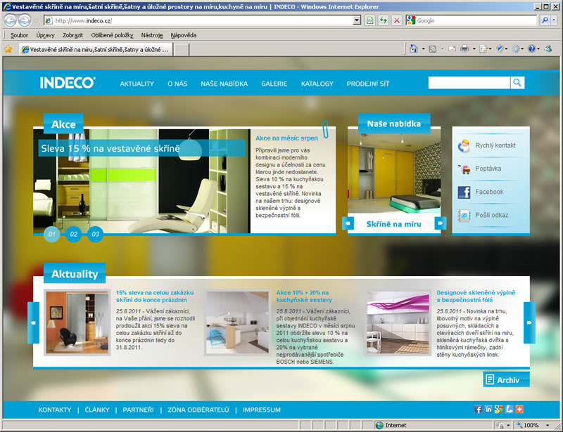 Pro společnost Indeco CZ jsme vytvořili novou formu komunikace v rámci internetových stránek. Náš návrh obsahuje grafické rozhraní, komunikační strategii a vlastní implementaci. Tyto služby doplňuje kooordinace a realizace Internetového marketingu.