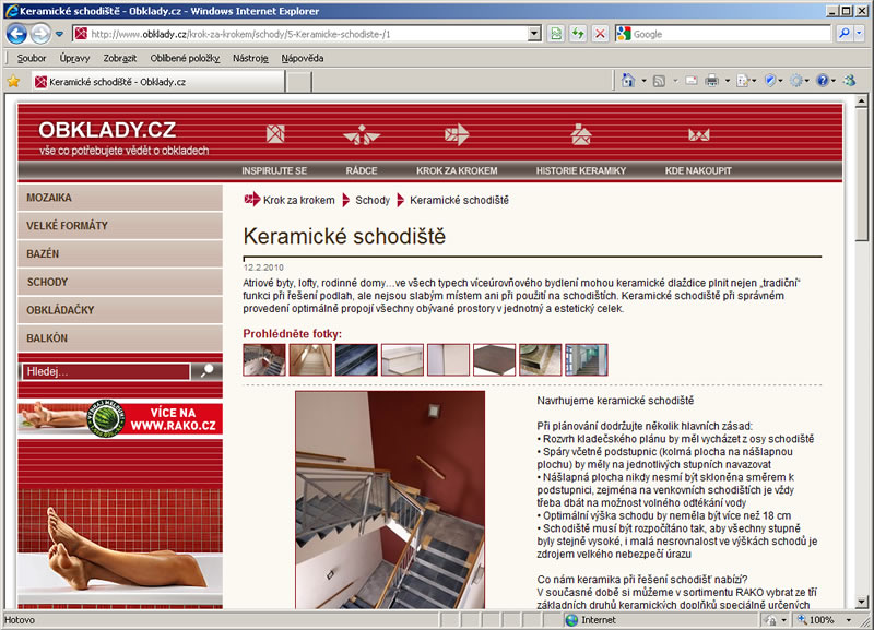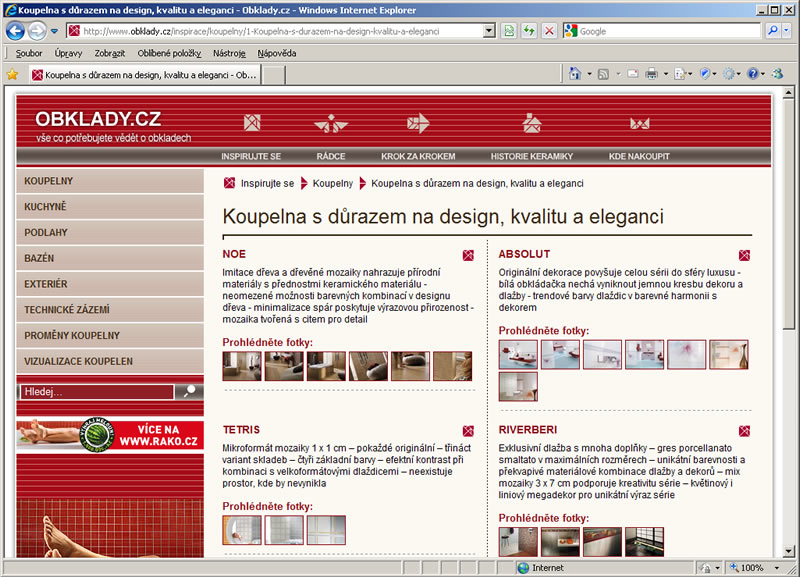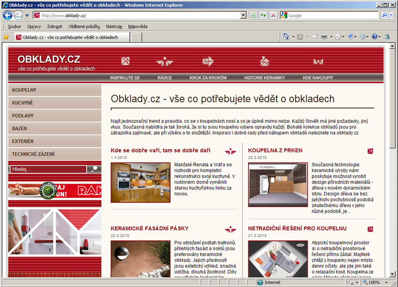 - kompletní realizace potálu zaměřeného na obklady: komunikace prezentace, webdesign, individuální redakční systém.
