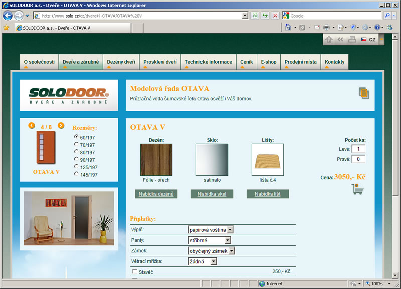 kompletní realizace projektu: komunikace prezentace, webdesign, individuální redakční systém, seo optimalizace. Vytvořeno propojení mezi konfigurátorem typů dveří a příplatků s vazbou na e-shop.