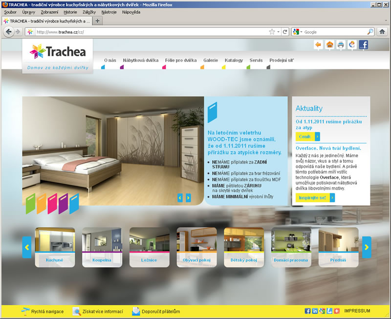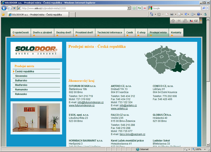 - kompletní realizace projektu: komunikace prezentace, webdesign, individuální redakční systém, provázání sortimentu s Internetovou prezentací prodejců, vytváření spořičů obrazovky.